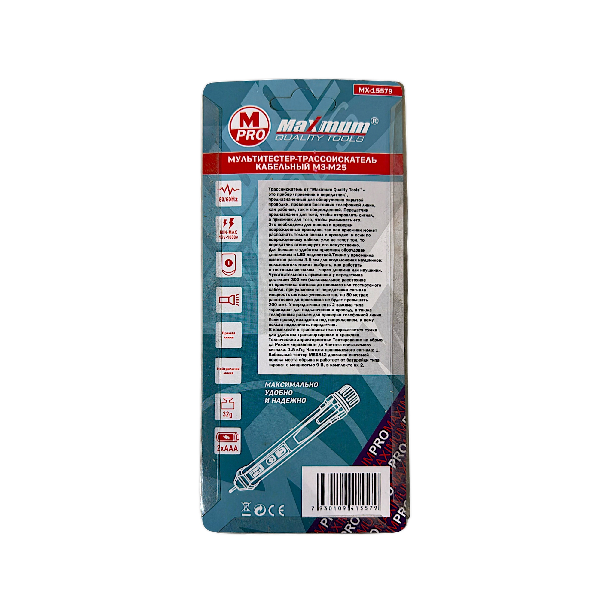 Перед вами не просто трассоискатель, а продуманный до мелочей инструмент. Модель MAXIMUM MX 15579 в удобной форме ручки.