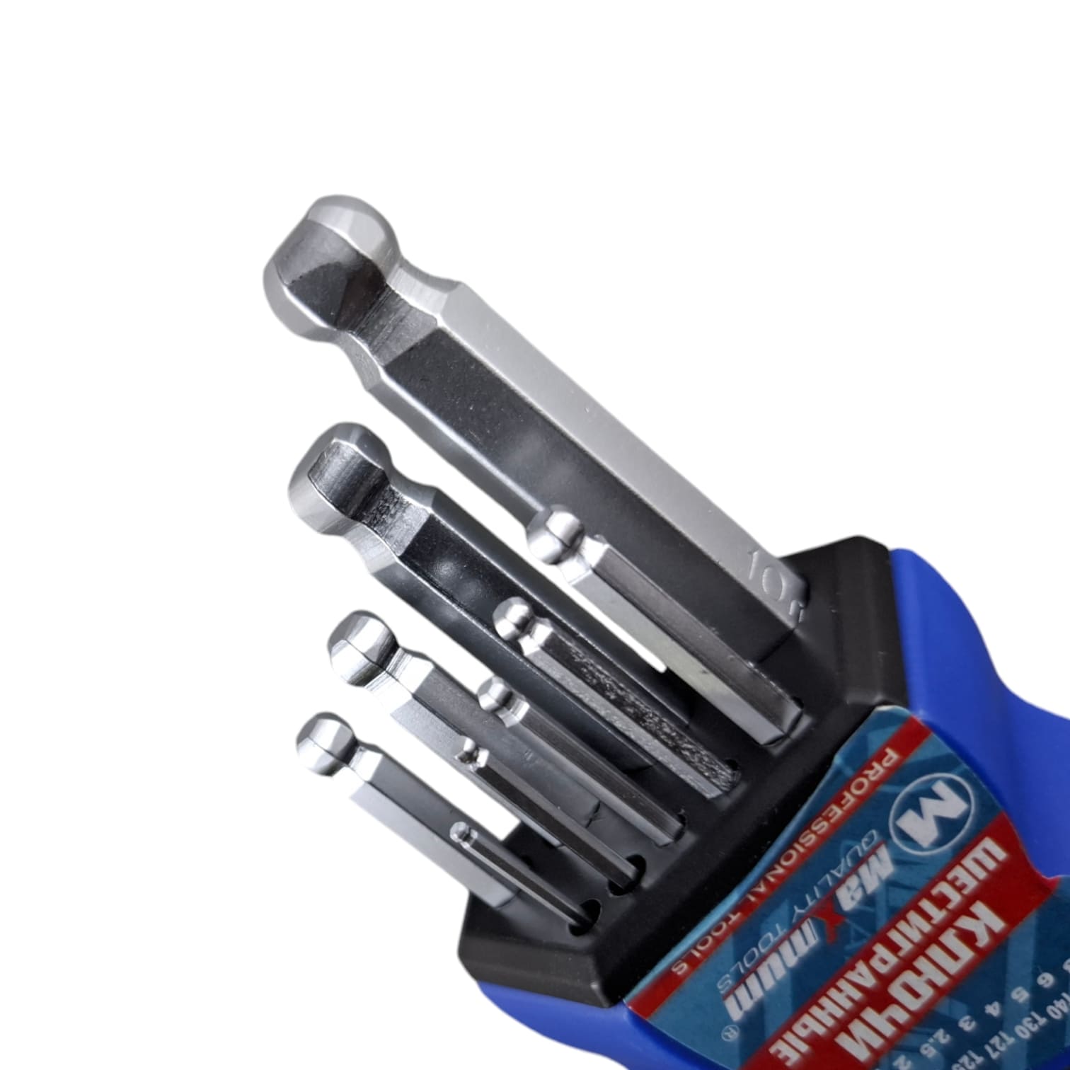 Набор состоит из 9-ти торцевых шестигранных Г-образных ключей с шаровидным наконечником 1,5-10 мм. Ключи длиной 120 мм предназначены для откручивания и закручивания крепежных изделий, имеющих в головке внутренний шестигранник.