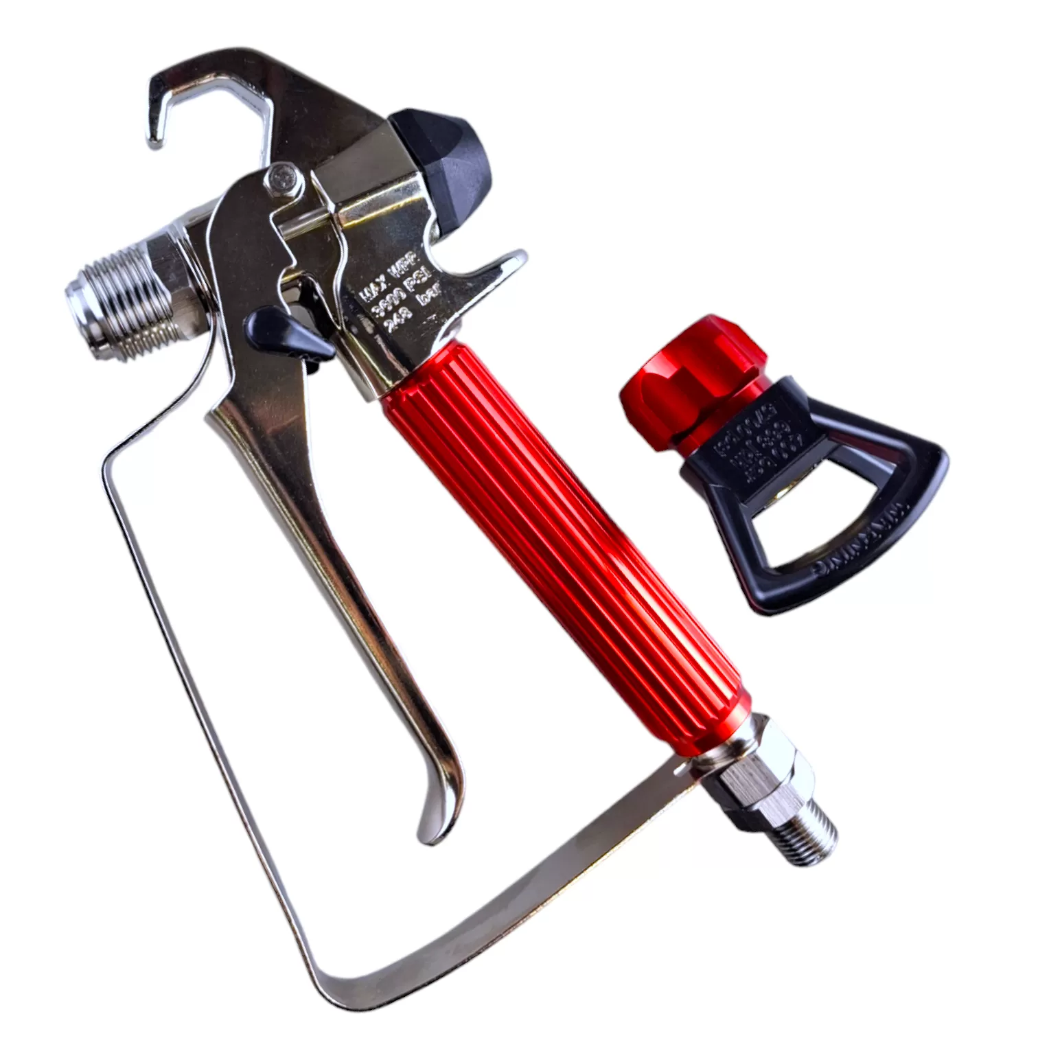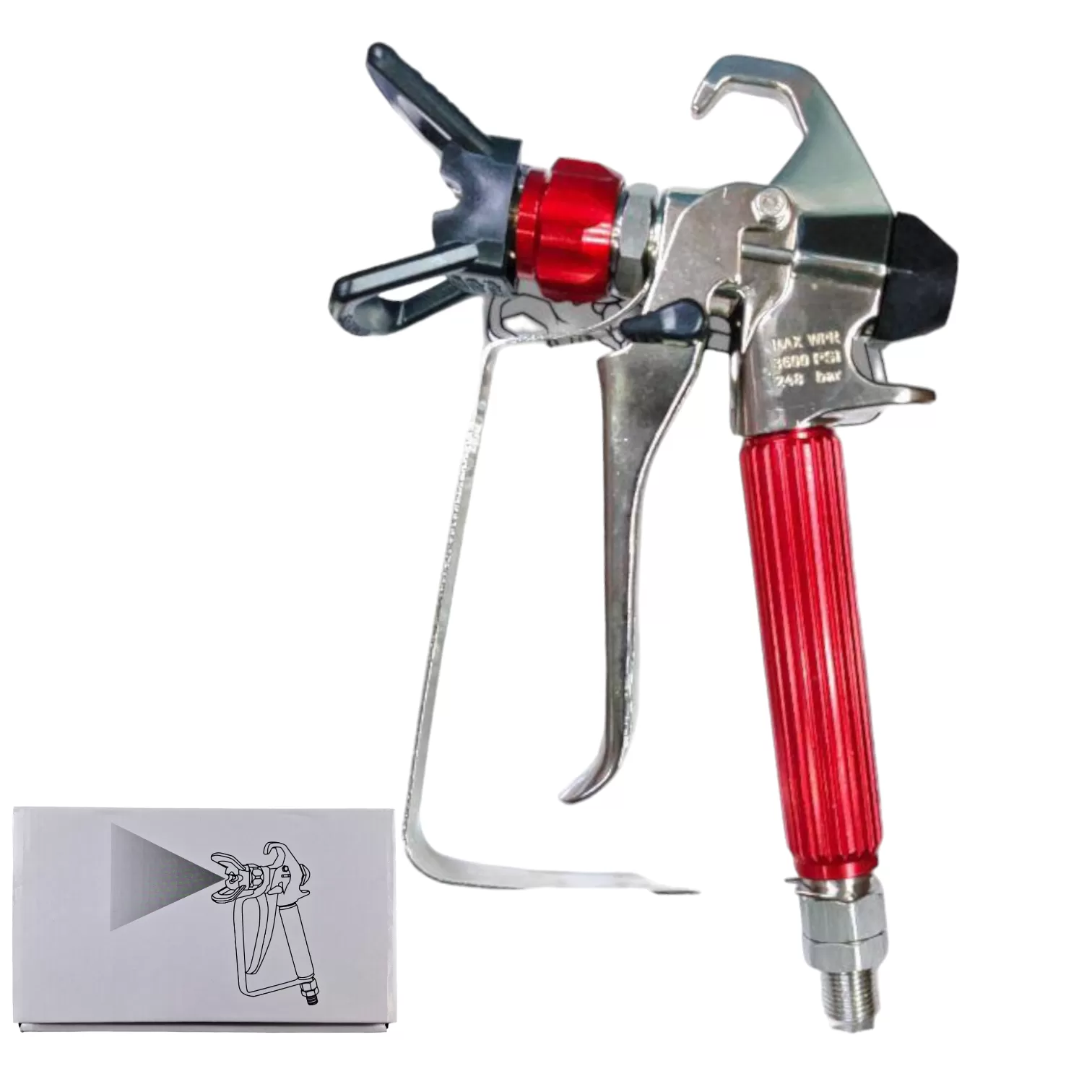 Профессиональный безвоздушный распылитель краски 3600PSI имеет легкий вес и удобный спусковой крючок на 4 пальца. Присоединительная резьба на краскопульте 1/4" "папа".