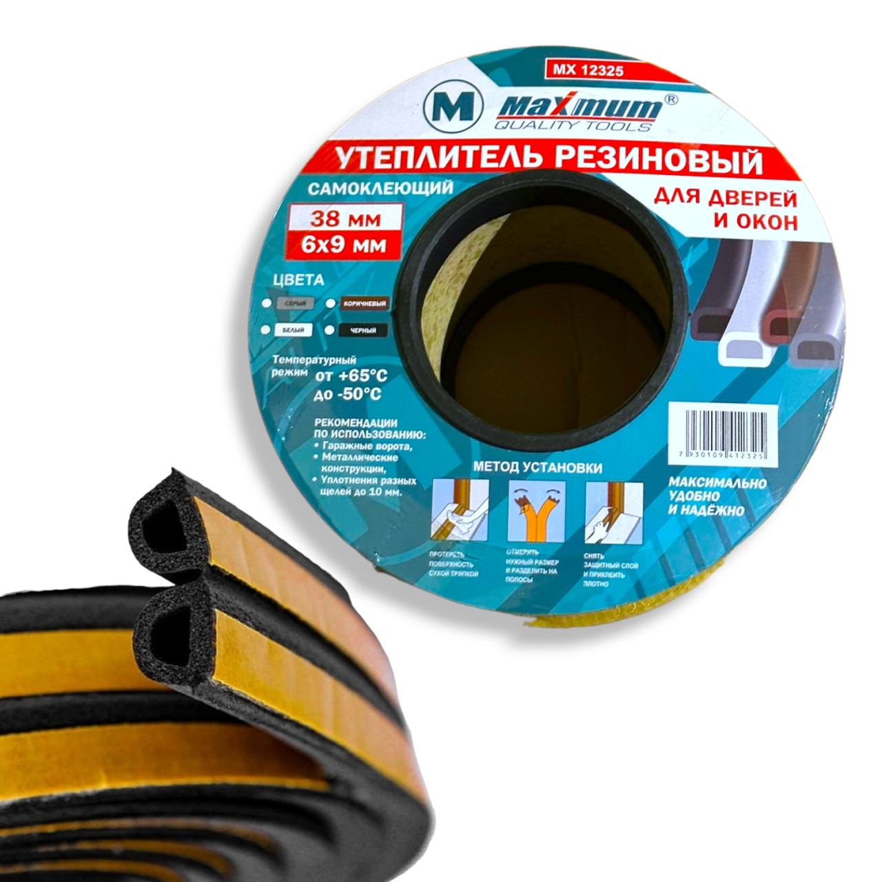 Уплотнитель черный EPDM самоклеящийся 38 метров 6*9 мм от "Maximum Quality Tools" предназначен для герметизации дверей и окон.